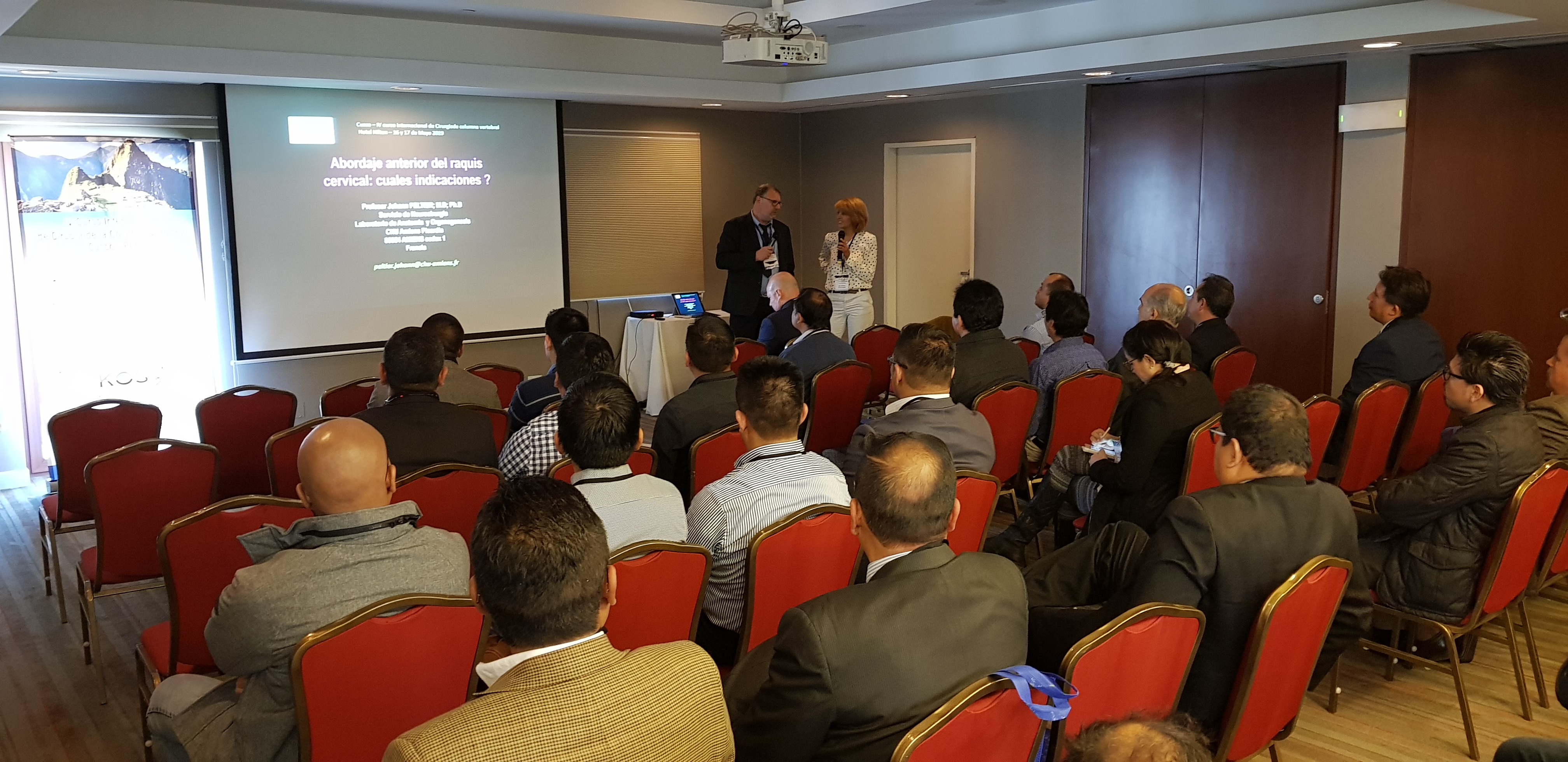 Les 16 et 17 Mai, l’Association KOSS a organisé son 4ème Cours International à Cuzco, Pérou. Ce cours était orienté sur la chirurgie du rachis et était présidé par le Dr Jacques Boulot, Président de l’Association KOSS. Pendant ces 2 journées, des chirurgiens orateurs ont effectué des présentations et les participants ont également pu assister à une chirurgie en direct, ainsi qu’un laboratoire d’anatomies. Vous trouverez ci-après la liste des orateurs et également le programme de l’événement.